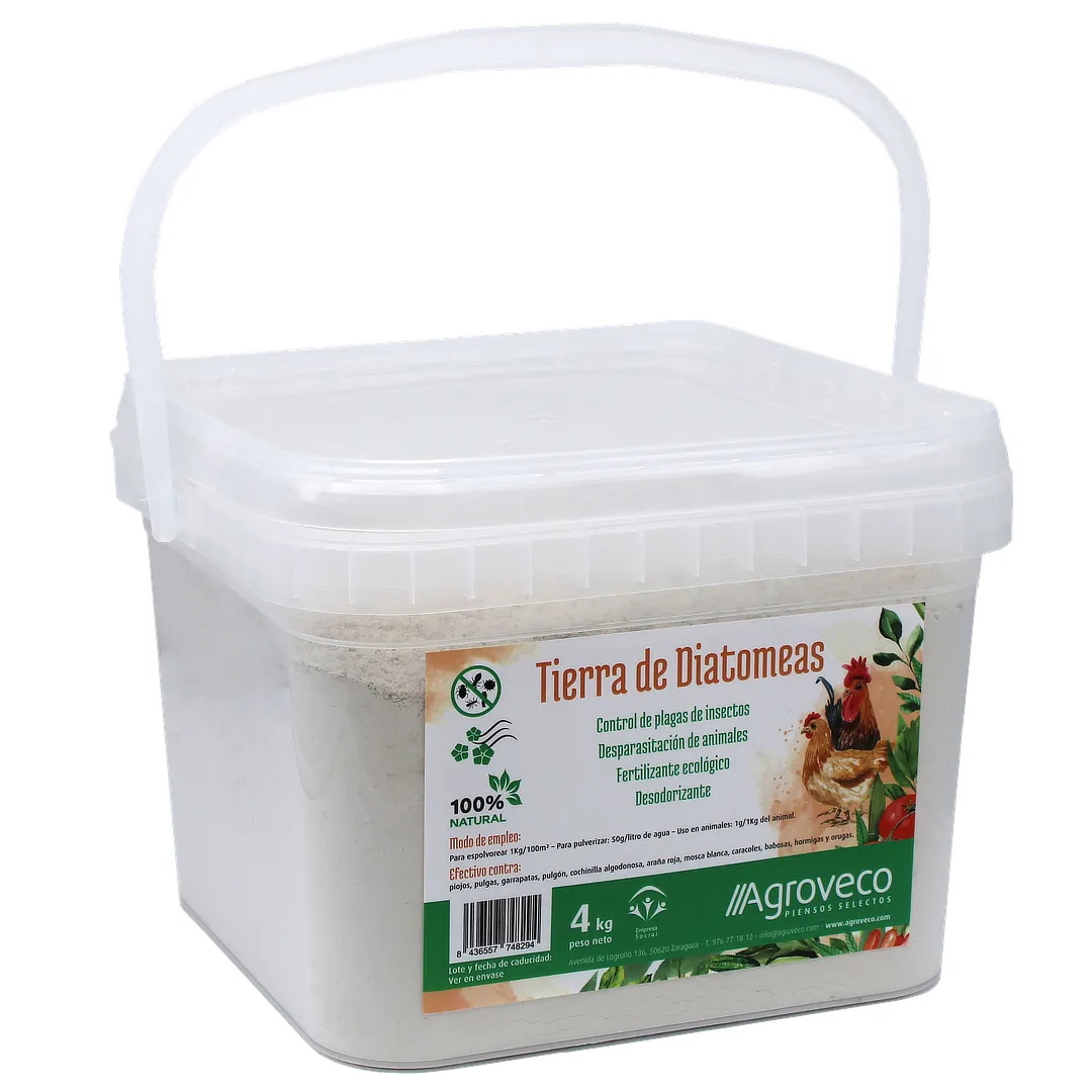 Producto 100% natural, no tóxico y altamente eficaz para la gestión de plagas y la mejora de suelos. Para profesionales o particulares que buscan alternativas sostenibles y eficientes, nuestra tierra de diatomeas es una inversión inteligente. Este polvo microscópico, derivado de fósiles de algas diatomeas, actúa de forma mecánica para el control de plagas en animales e instalaciones (casetas, etc,), mejora de suelos y fertilizante natural.